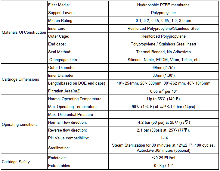 2. Absolute rating, filtration efficiency≥99.99%, Up to 0.01 micron in gas sterile filtration;